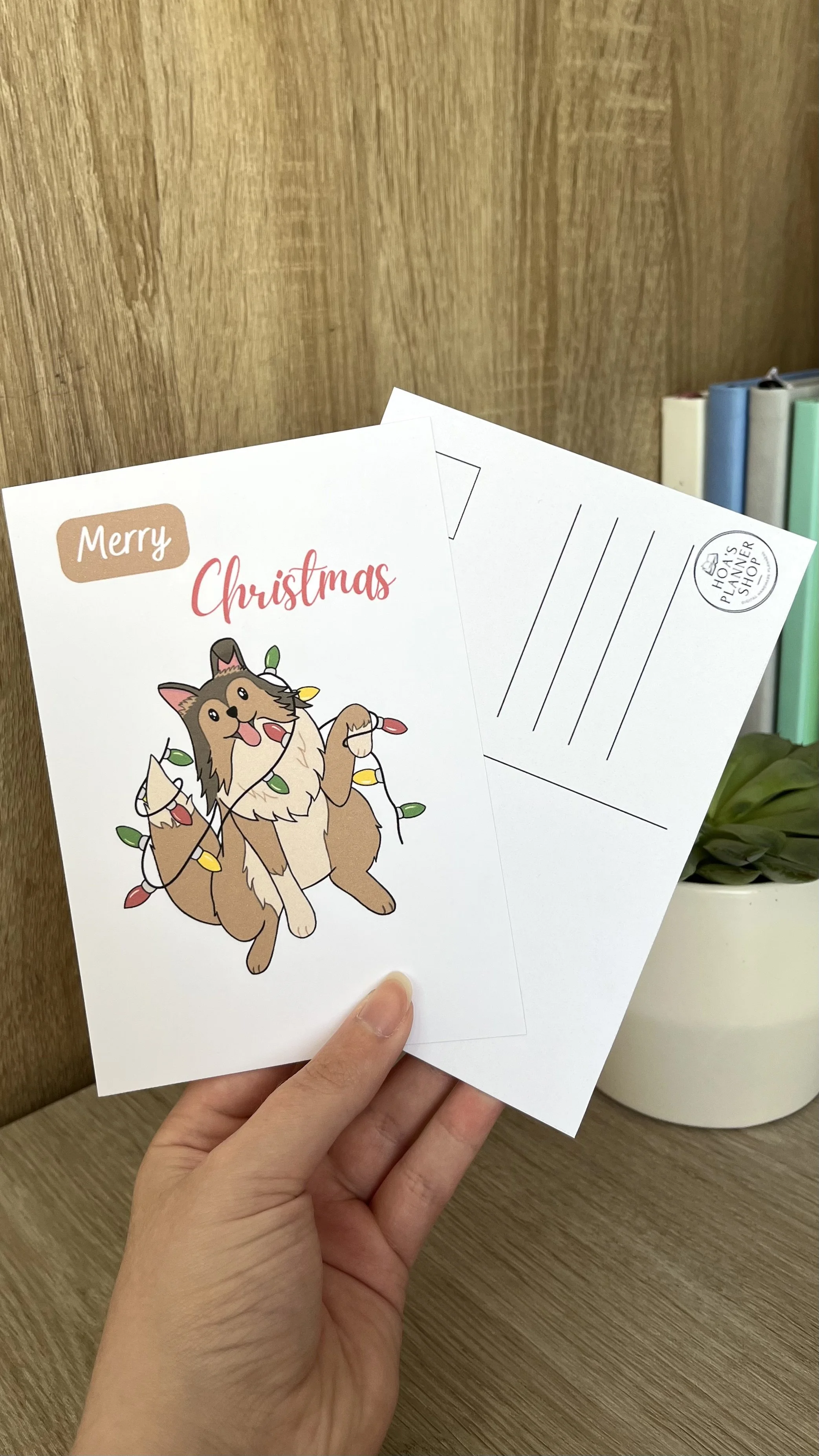 The perfect Christmas card for all the dog lovers in your life. And this card features my dog Skyla tangled in Christmas lights. And the back of the postcard allows you to send it to your loved ones !